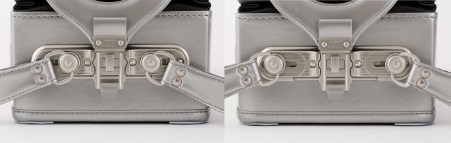 「NIKE」モデルには、厚着をしたときに下ベルトの取り付け部を広げられる「ミラくるっロック」(写真上)を、オリジナルモデルには「ワンタッチロック」を採用。ロックはどちらも軽い力で開閉でき、とても使いやすい。