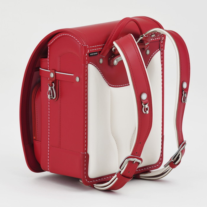 肩ベルトのクッションにも低反発素材のメモリーフォーム(R)を使用。厚さ3mmが一般的ですが、村瀬鞄行では肩ベルトにも厚さ10mmの1枚ものを採用。縫い込みが難しくて時間がかかるという縫製職人泣かせの厚さですが、しっかりした厚みのクッションにより、肩にかかる重量が適度に分散されて、お子様の体への負担をやわらげています。