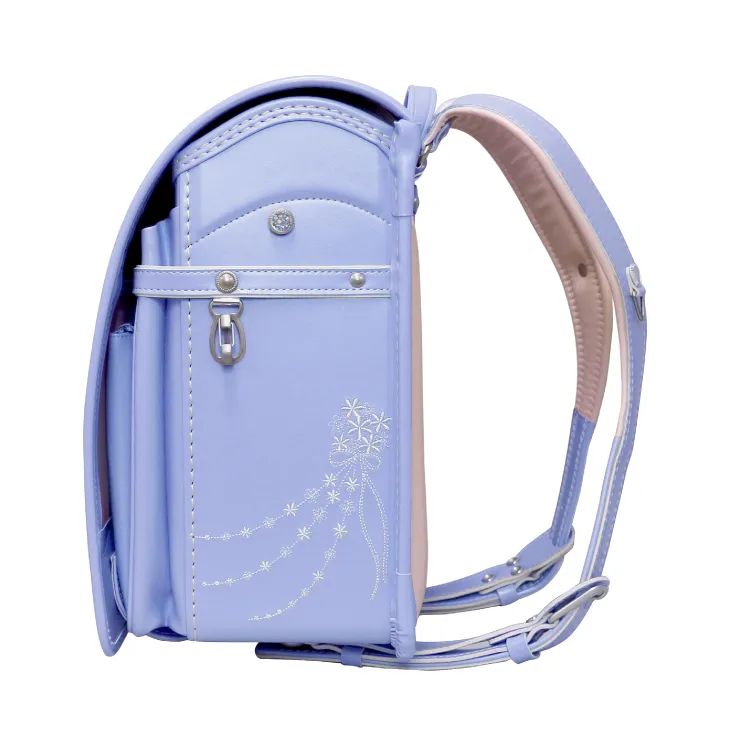 細やかな銀のフラワーをかわいく束ねた刺繍が入ったフェミニンなランドセル。内部もハート型の窓やファスナー引き手で、とってもキュート。さわやかなパステルカラーが女の子に大人気です。