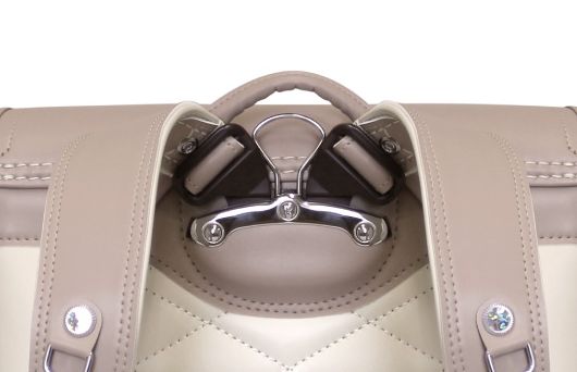 両サイド上部ホック(各ひとつずつ)が取り外し可能です。別売りの専用カスタマイズアイテム(1個500円)を購入していただければ、さらにカッコ良く、かわいらしく、ランドセルをカスタマイズできます。