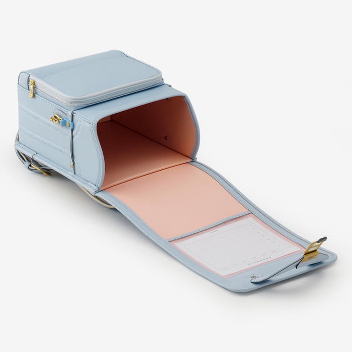 固定観念を捨てて構造を見なおし、作りの良さはそのままにパーツ点数を削減。中マチをなくしたデザインは、従来よりも軽く、とてもスタイリッシュ。しかも、収納部の一部屋の大きさが増えたため、教科書からタブレットまでしっかりと収納。