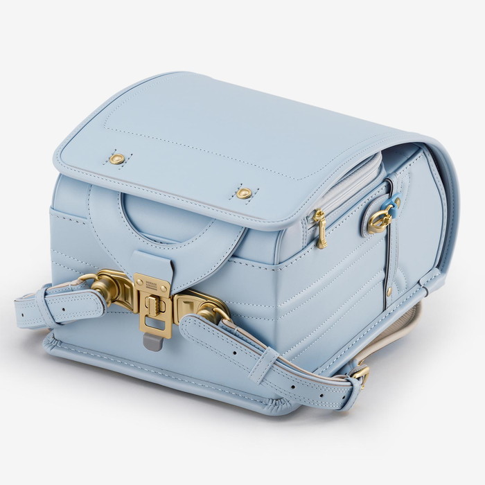収納の取出し口とかぶせの外周を縫い込む際に、生地や革の切れ目が外側に向かって出ない仕立ても村瀬鞄行のランドセルに共通する特徴。面積の大きな部品が守られ、もしもの破れの際も交換箇所が少なく済みやすいメリットがあります。