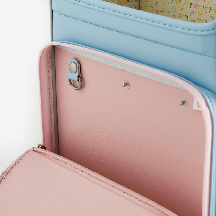 教科書を入れる部分の内側に生地を張ることで、より長持ち。底の部分には底板入り。全ランドセル共通の機能。