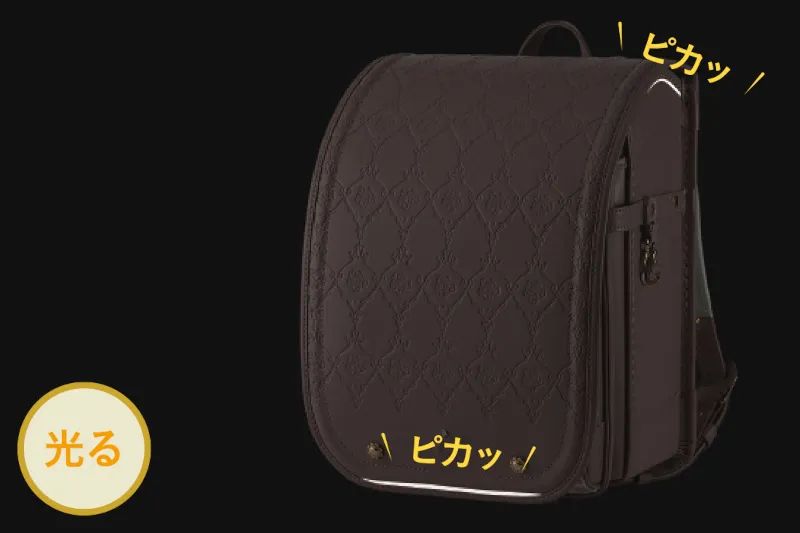 自転車・自動車のライトが当たるとピカッと光る反射材を全方位に配置。悪目立ちせずデザインを損なわないカラーリフレクターを使用しました。
