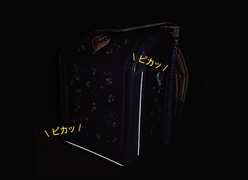 自転車・自動車のライトが当たるとピカッと光るカラー反射材。お子様の存在をドライバーに伝えます。