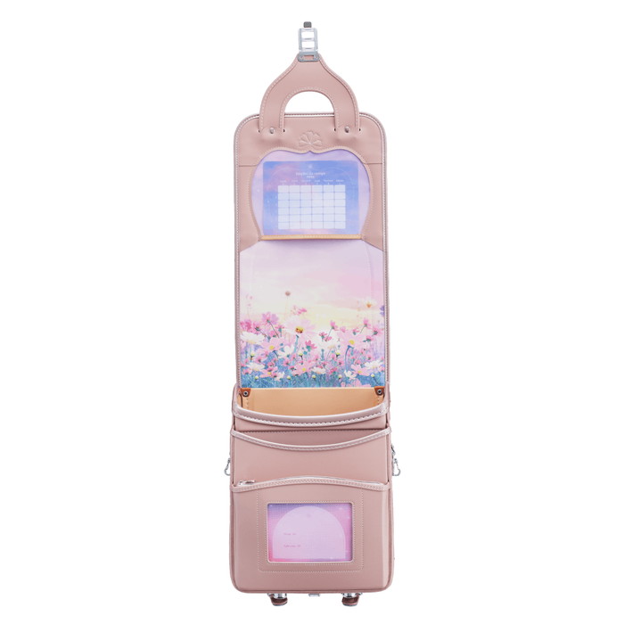 NASAのために開発された衝撃吸収材を使った「地球NASAランドセル®」シリーズに、女の子向けの軽量キューブ型モデルが加わりました。反射材やカブセ裏などに、モチーフのコスモスをあしらった、とってもかわいいランドセルです。