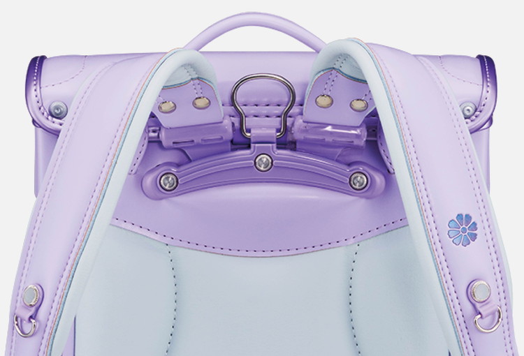 肩ベルトの付け根が上向きになるふわりぃ背カンを採用。背負った際にランドセルが斜め後ろに引っ張られて背中から離れてしまう事を抑制し、体感重量が軽くなります。