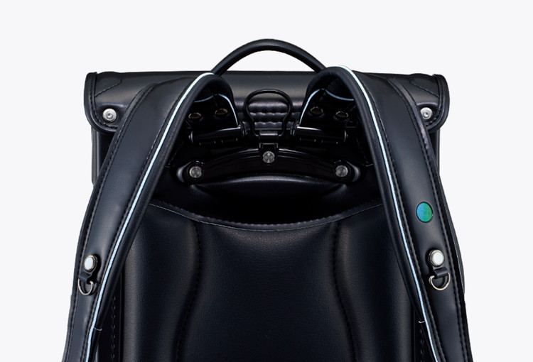 肩ベルトの付け根が上向きになるふわりぃ背カンを採用。背負った際にランドセルが斜め後ろに引っ張られて背中から離れてしまう事を抑制し、体感重量が軽くなります。