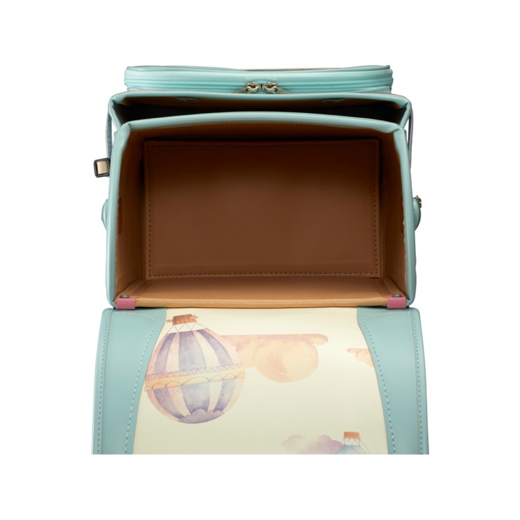 入学時の「女の子」が卒業時に「女性」に成長していく過程を気球が大空へ舞う様になぞらえたナチュラルテイストのランドセルです。