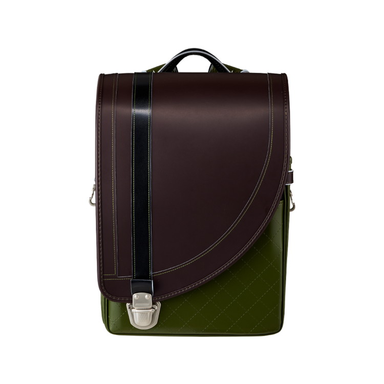 ランドセルでは珍しい3色のコンビカラー。キューブ型の半カブセです。