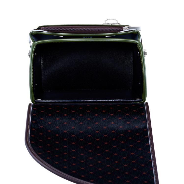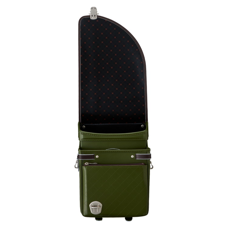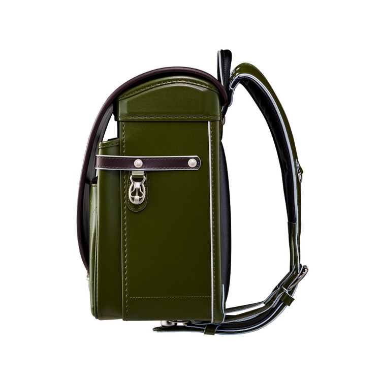 徐々に人気が高まっている半カブセでも、ヨロのカブセは左右非対称。超個性的ですが機能的なメリットも。差込式錠前はランドセルを立てたままでも開けられるため、机の上で開いた際に手前スペースが空き、より小スペースで荷物の出し入れが可能になりました。