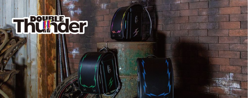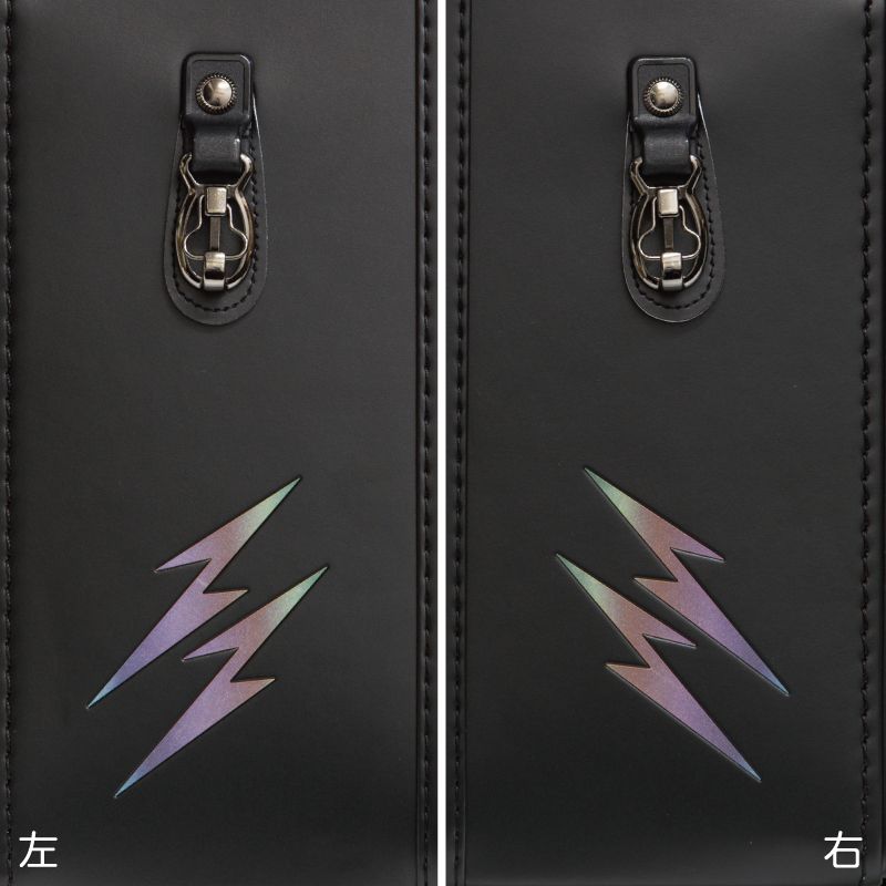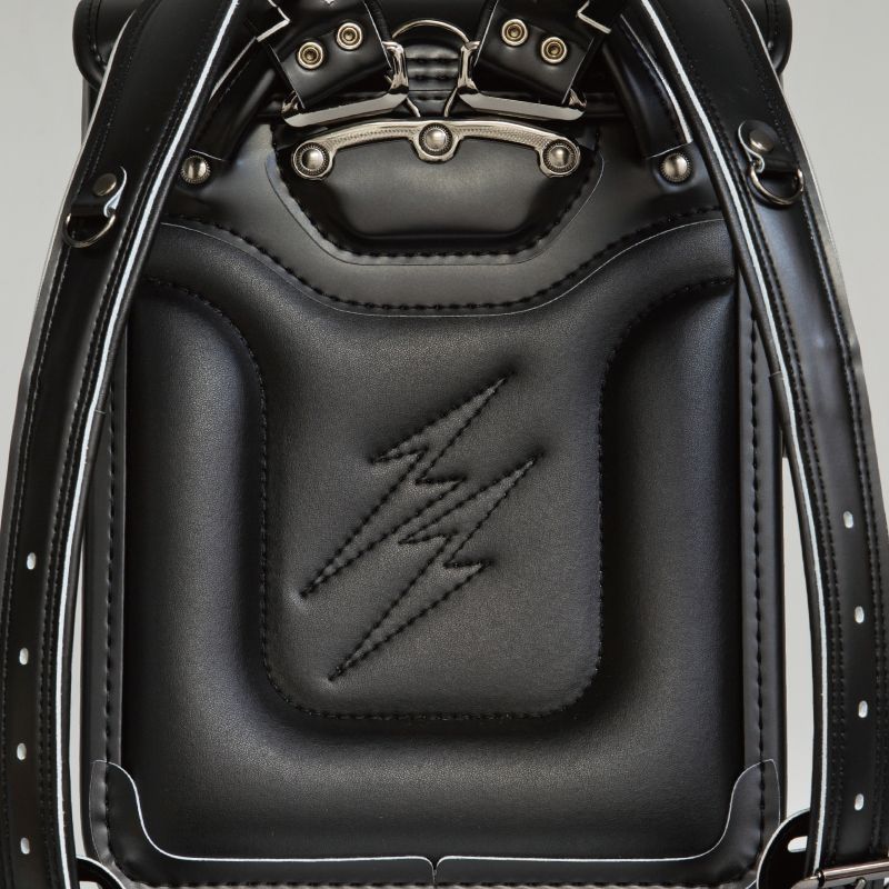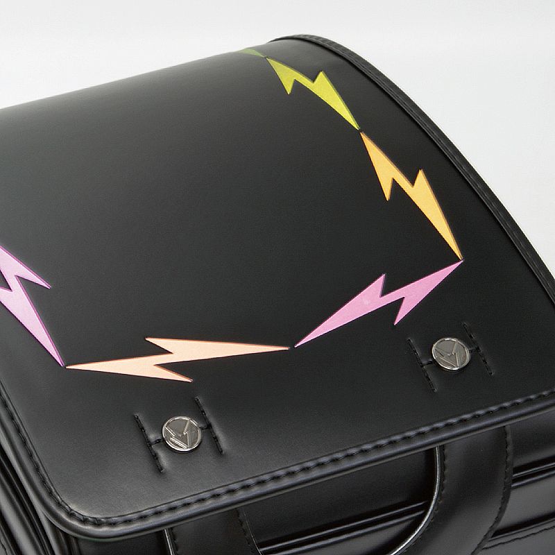 稲妻モチーフのリフレクターが特徴のランドセル。子供たちの安全を守ります。キューブ型。