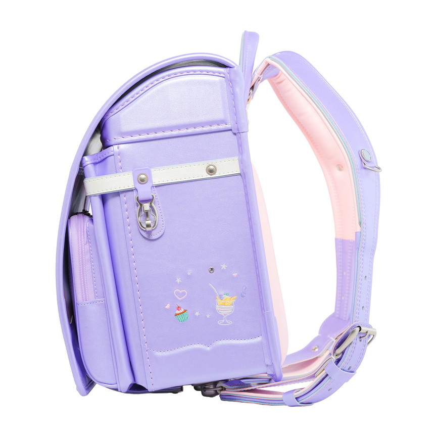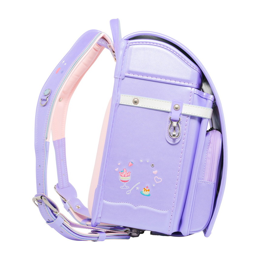 ランドセル全体にちりばめられた、可愛らしいスイーツの刺繍。ポケットの引き手にはスイーツ型のチャームをあしらい、細かな部分まで楽しい雰囲気に仕上げています。お気に入りのスイーツを探すような、ときめきたっぷりのデザインです。