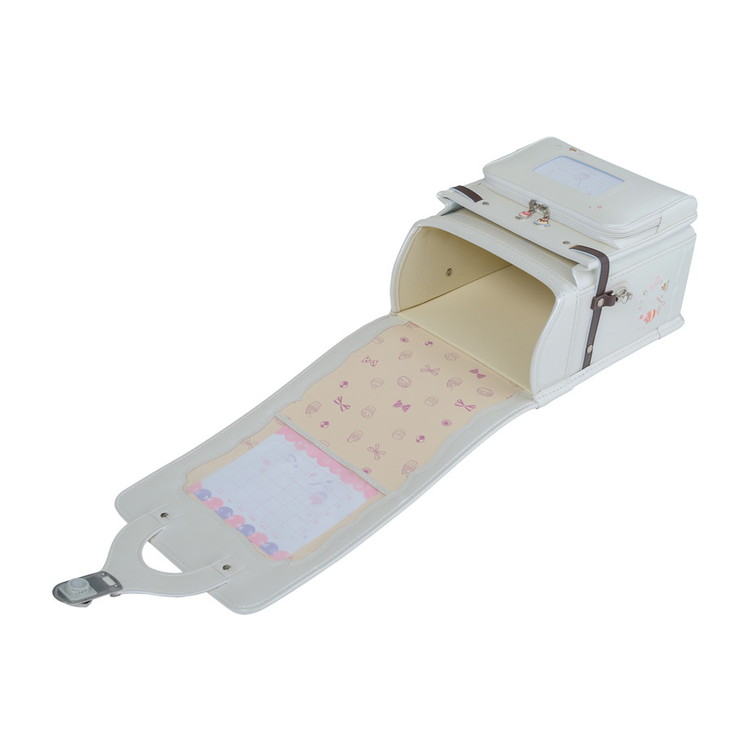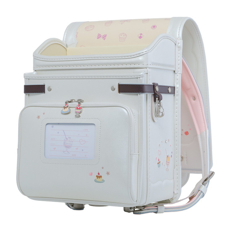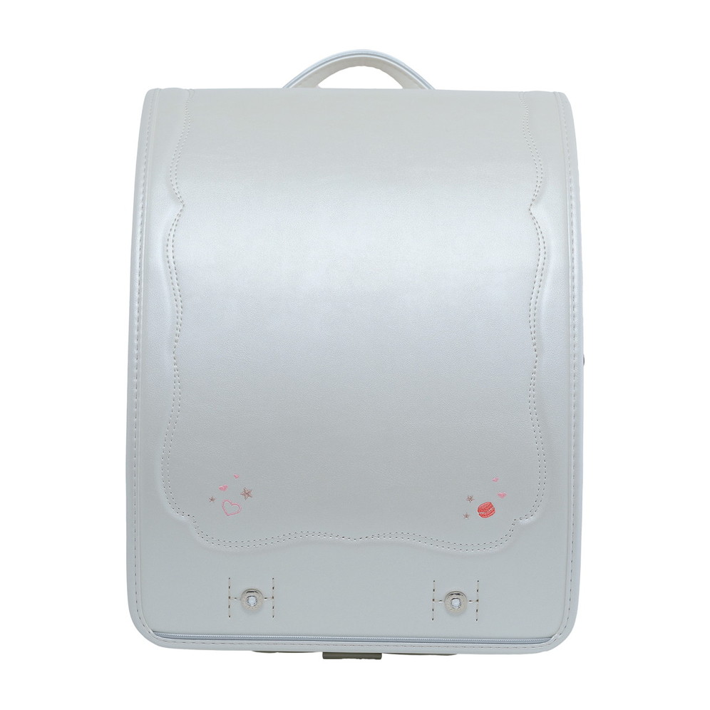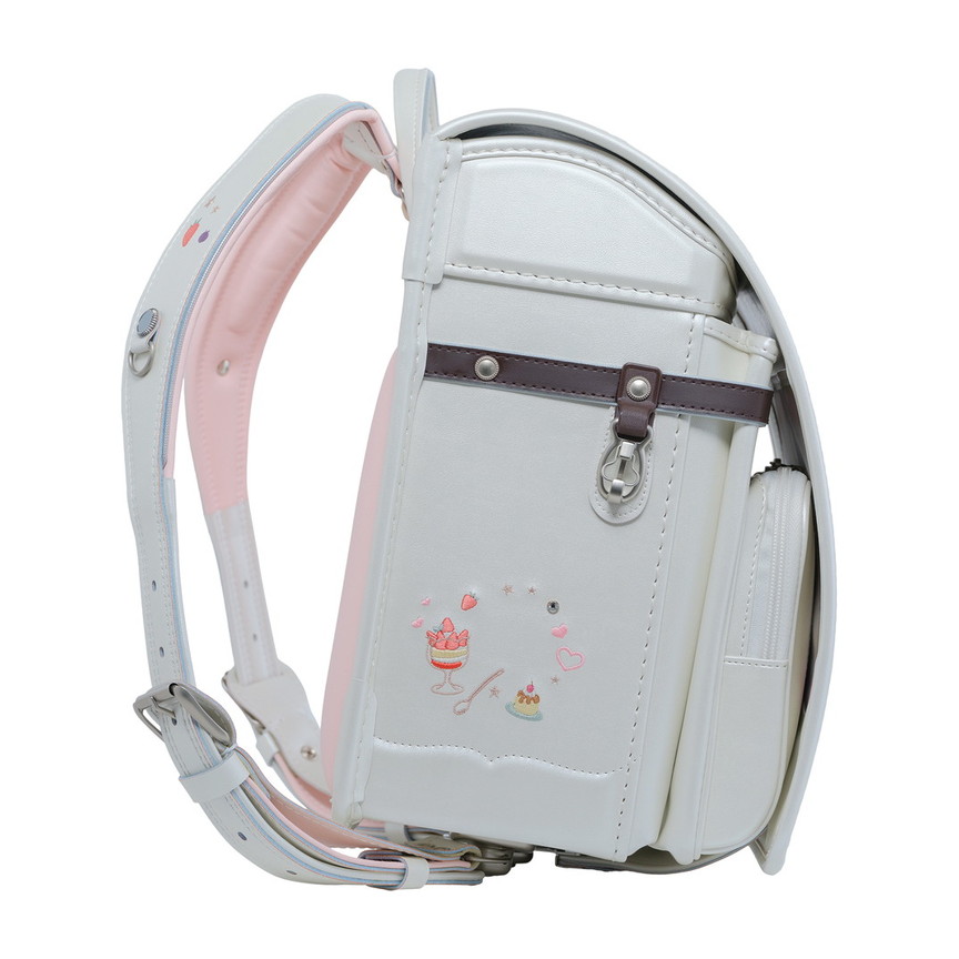 ランドセル全体にちりばめられた、可愛らしいスイーツの刺繍。ポケットの引き手にはスイーツ型のチャームをあしらい、細かな部分まで楽しい雰囲気に仕上げています。お気に入りのスイーツを探すような、ときめきたっぷりのデザインです。