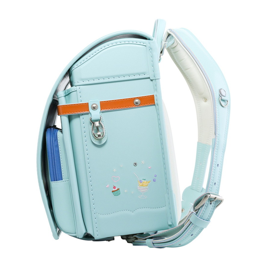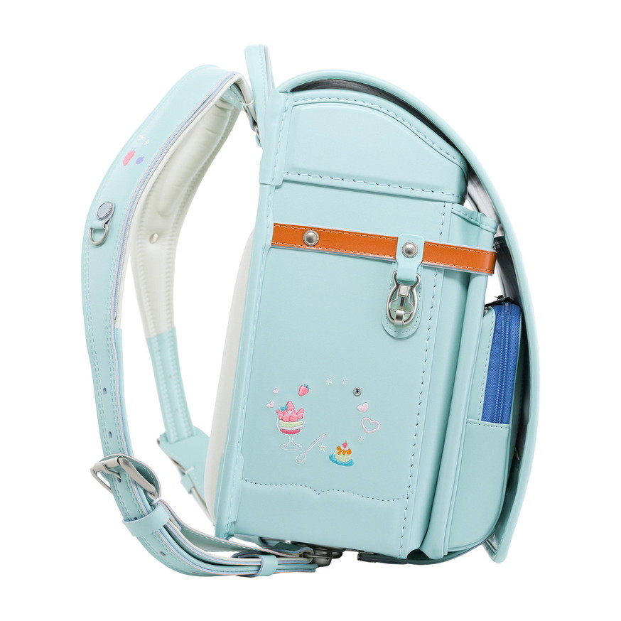 ランドセル全体にちりばめられた、可愛らしいスイーツの刺繍。ポケットの引き手にはスイーツ型のチャームをあしらい、細かな部分まで楽しい雰囲気に仕上げています。お気に入りのスイーツを探すような、ときめきたっぷりのデザインです。