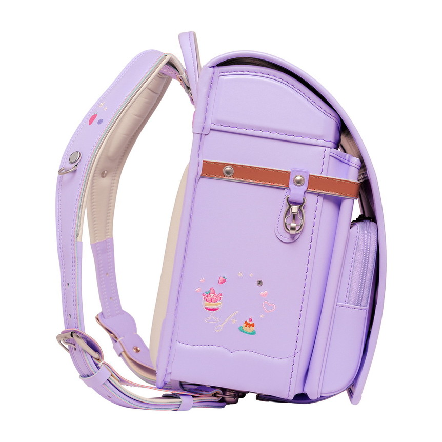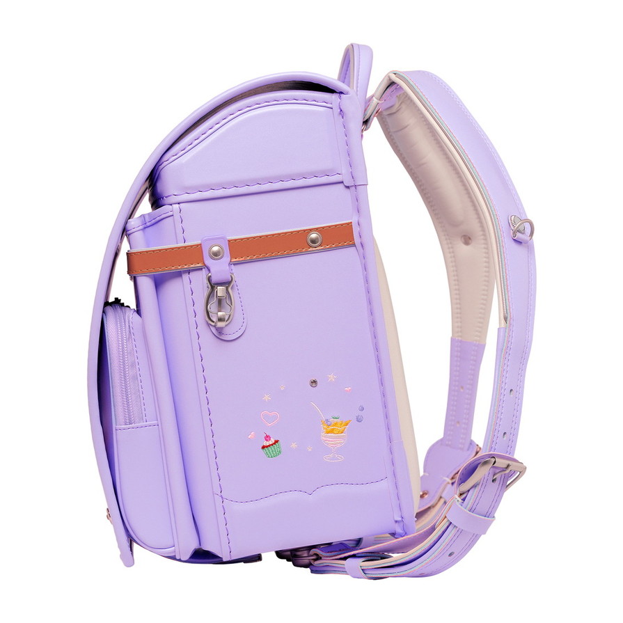 ランドセル全体にちりばめられた、可愛らしいスイーツの刺繍。ポケットの引き手にはスイーツ型のチャームをあしらい、細かな部分まで楽しい雰囲気に仕上げています。お気に入りのスイーツを探すような、ときめきたっぷりのデザインです。