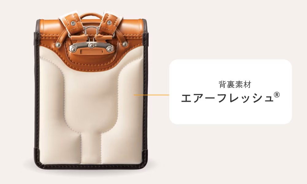 背当て表面の素材には「エアーフレッシュ®」を採用しています。暑い夏にも耐えられるような通気性の良い素材です。汗ムレを防ぐとともに、ソフトな手触りで長時間背負っていても快適さを保ちます。