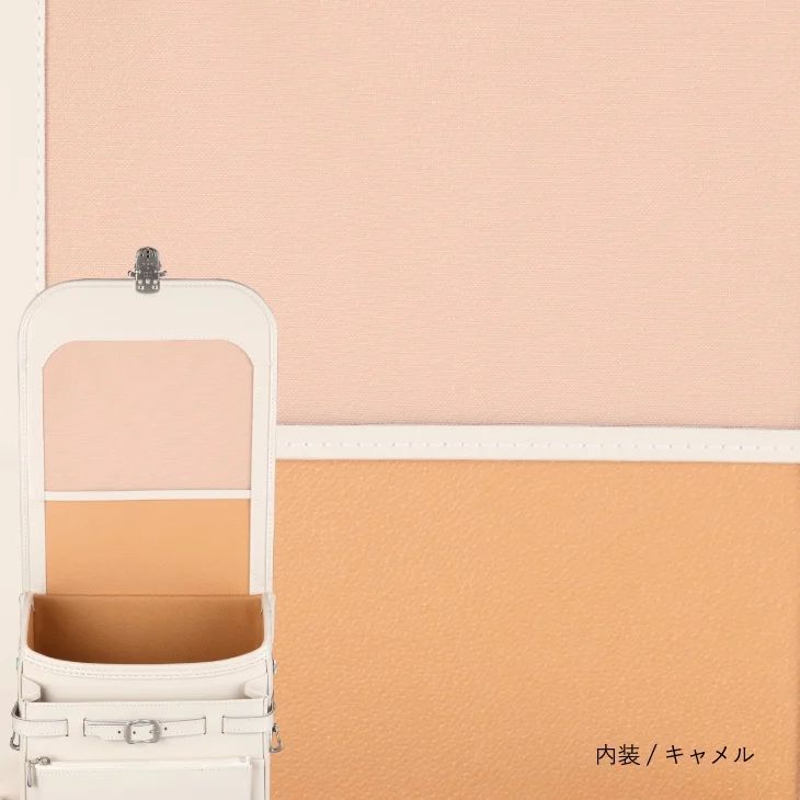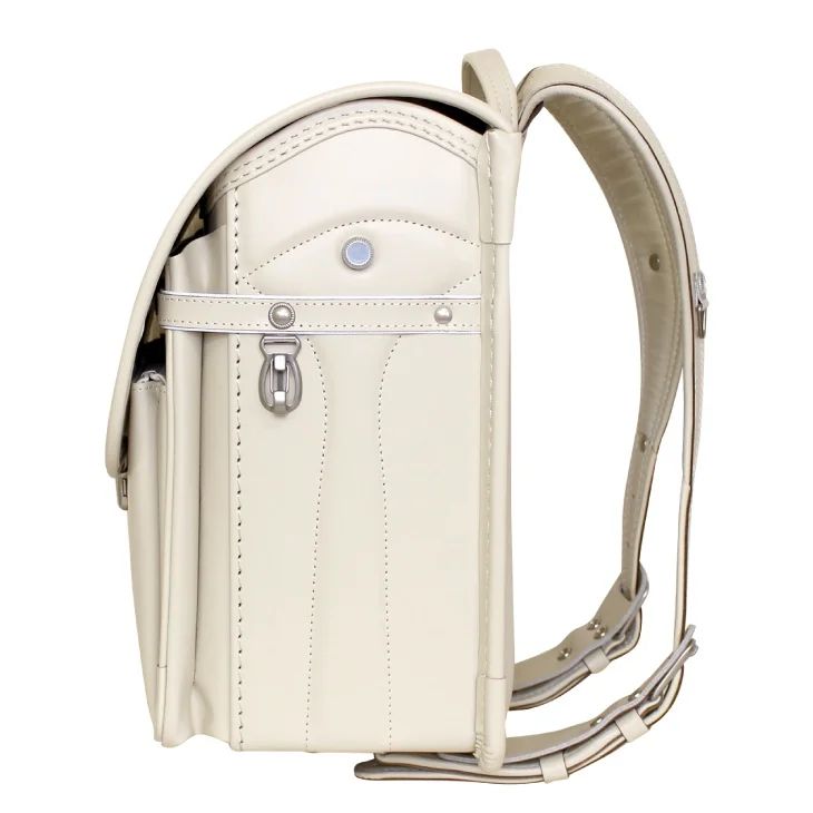 人気急上昇中の縦型半カブセタイプに加わった牛革モデルです。マットな色合いが特徴のシボタイプの牛革を使い、上品で軽快なイメージの半カブセタイプのランドセルに高級感を加えました。カラーはベージュのみ。