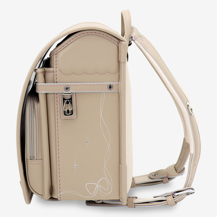 名古屋市の自社工場でランドセルを手作業で製造する三栄鞄が展開するブランド「らんどせる屋さん」の主力製品のひとつが「ルバン(ruban)」。「リボン」をモチーフにしたキュートなデザインが特徴の女の子向けモデルです。素材はクラリーノ®エフ。背カンや肩ベルトなど、随所にオリジナルの機能を盛り込み、背負い心地は抜群。学習院型。