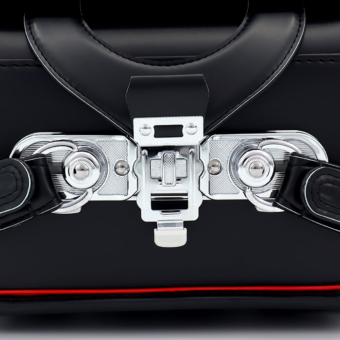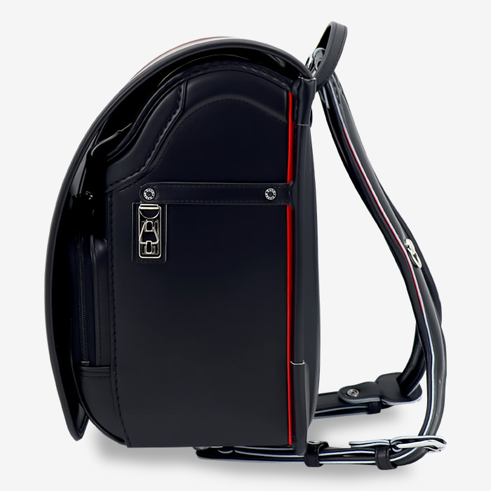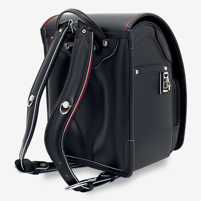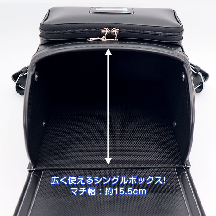 三栄鞄が展開するブランド「らんどせる屋さん」の主力製品のひとつ。傷に強い「クラリーノ®タフロック®ネオ」をメイン素材に使った、男の子に人気の高い軽量・頑丈モデルです。収納部は中マチを廃したシングルボックスタイプで、外寸は通常のランドセルと同等ながら、大マチは155mmと収納力抜群。名古屋の自社工房で職人が製造し、ブラックに赤やブルーなどの反射材を加えたコンビカラーがおしゃれで、6年間安心して使える機能性を備えています。 学習院型。
